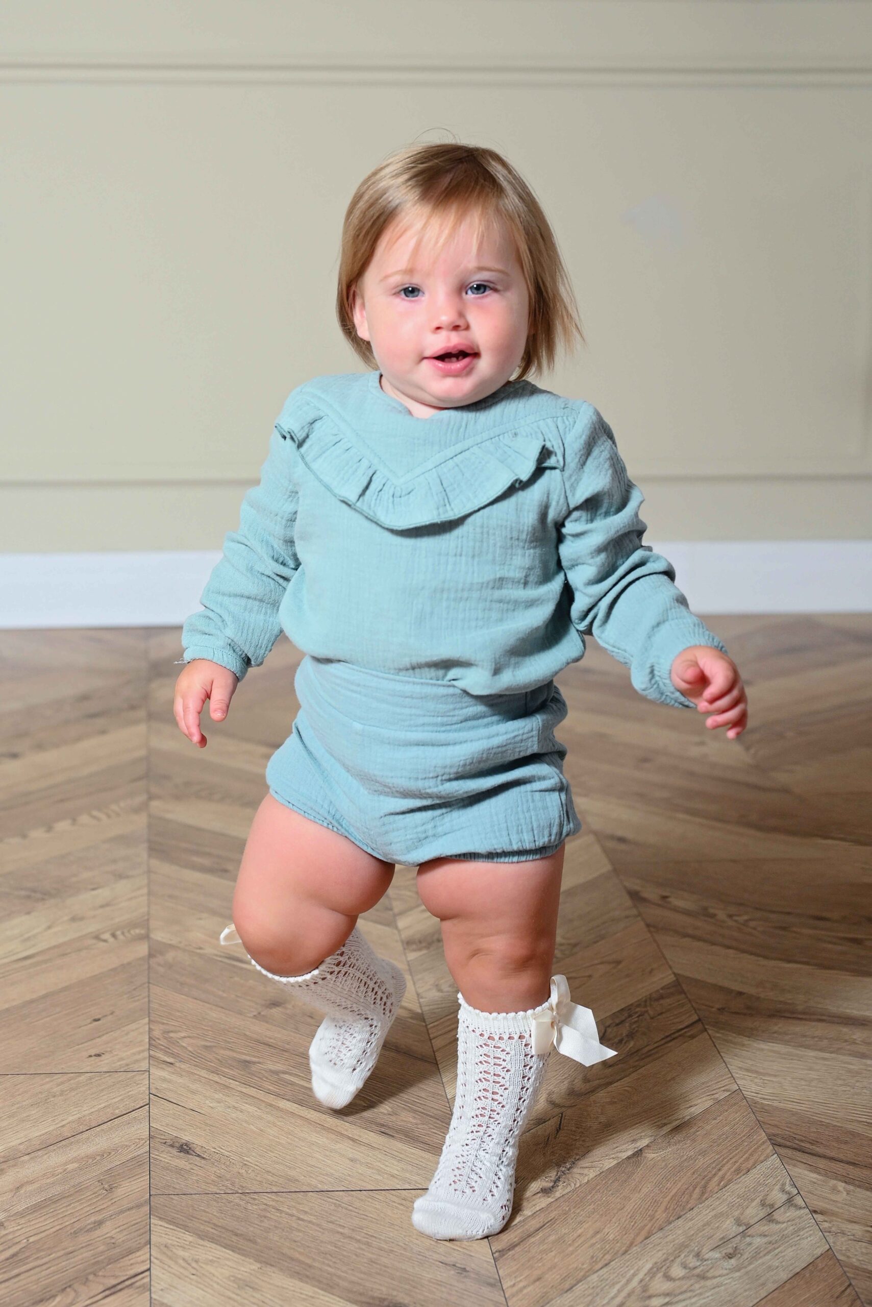 שמלת וינטז' ריקמה- חום בהיר מידות 6-20